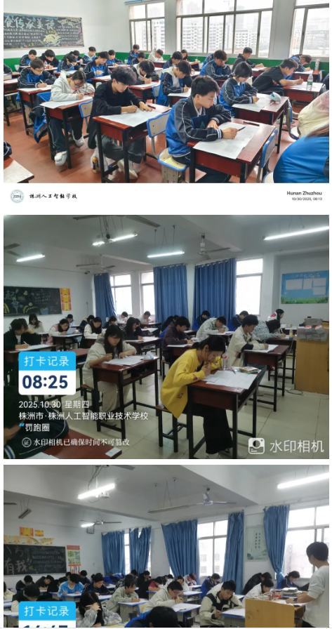 考场上,同学们奋笔疾书、身姿端正、沉着审题,良好的考场氛围,充分体现了人工智能学子积极向上的学习精神和良好的考风考纪。监考、巡考教师各司其职,认真负责,坚守岗位,努力为考生创造良好的考试环境与考场秩序。